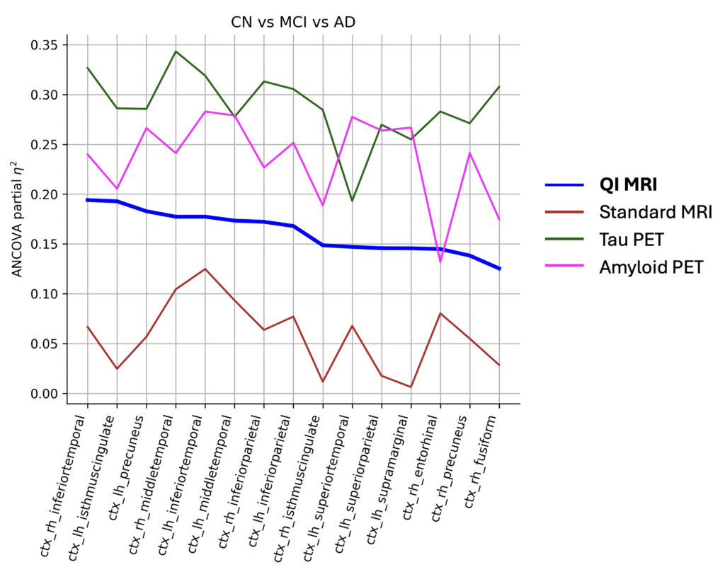 Tested on 484 subjects, QI's MRI delivers 3x greater sensitivity to differentiate disease severity compared to standard of care MRI, and approaching PET imaging which is many times more expensive.